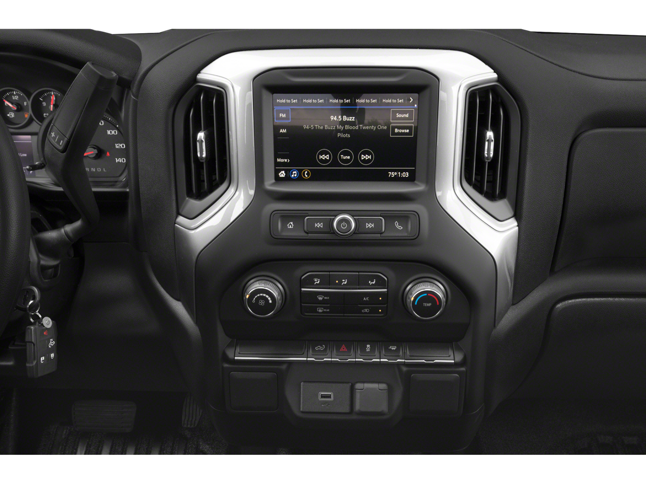 WT CONVENIENCE PACKAGE includes (AQQ) Remote Keyless Entry, (QT5) EZ Lift power lock and release tailgate, (AKO) tinted windows, (C49) rear-window defogger, (K34) cruise control, (DLF) power mirrors; Regular Cab models also include (AXG) power windows, express up/down driver, (AED) power windows, express down passenger and (AU3) power door locks (When ordered with (PQA) WT Safety Package, (DLF) power mirrors include (UKC) Lane Change Alert with Side Blind Zone Alert and (DP6) high-gloss mirror caps. ENGINE, 5.3L ECOTEC3 V8 with Active Fuel Management, (355 hp [265 kW] @ 5600 rpm, 383 lb-ft of torque [518 Nm] @ 4100 rpm), DIFFERENTIAL, HEAVY-DUTY LOCKING REAR, MIRRORS, OUTSIDE HEATED POWER-ADJUSTABLE When (PQA) WT Safety Package is ordered, includes (DP6) high gloss Black mirror caps.), AUDIO SYSTEM, CHEVROLET INFOTAINMENT 3 SYSTEM 7" diagonal color touchscreen, AM/FM stereo. Additional features for compatible phones include: Bluetooth® audio streaming for 2 active devices, voice command pass-through to phone, Apple CarPlay® and Android Auto® capable. (STD), TRANSMISSION, 6-SPEED AUTOMATIC, ELECTRONICALLY CONTROLLED (STD). Chevrolet Work Truck with Red Hot exterior and Jet Black interior features a 8 Cylinder Engine with 285 HP at 5300 RPM*.