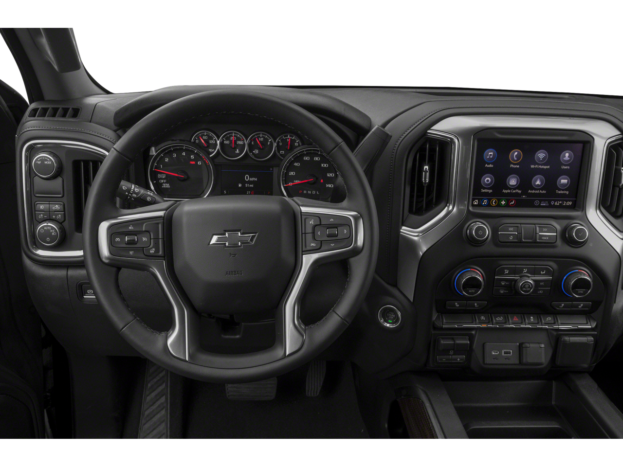 ENGINE, 5.3L ECOTEC3 V8 (355 hp [265 kW] @ 5600 rpm, 383 lb-ft of torque [518 Nm] @ 4100 rpm); featuring available Dynamic Fuel Management that enables the engine to operate in 17 different patterns between 2 and 8 cylinders, depending on demand, to optimize power delivery and efficiency (NOTE: Certain 21MY vehicles will include (YK9) Not Equipped with Dynamic Fuel Management.), CONVENIENCE PACKAGE II includes (UG1) Universal Home Remote, (A48) rear sliding power window, (KI4) 120-volt power outlet, (KC9) 120-volt bed-mounted power outlet, (IOS) Chevrolet Infotainment System with 8" diagonal color touch-screen with (MCR) USB ports, SiriusXM with 360L, (U2L) HD Radio and (UVB) HD Rear Vision Camera Includes (UQA) Bose Premium Sound System. Certain 21MY vehicles will include (RG0) Not Equipped with HD Radio, which removes (U2L) HD Radio. See dealer for details.), Z71 OFF-ROAD PACKAGE includes (Z71) Off-Road suspension, (JHD) Hill Descent Control, (NZZ) skid plates and (K47) heavy-duty air filter Includes Z71 hard badge, (N10) dual exhaust, (PZX) 18" bright silver painted wheels, (XCK) 265/65R18 all-terrain, blackwall tires and (NQH) 2-speed transfer case. BED PROTECTION PACKAGE includes (B1J) wheel house liners and (CGN) Chevytec spray-on bedliner, CONVENIENCE PACKAGE WITH BUCKET SEATS includes (A50) bucket seats, (D07) center console, (CJ2) dual-zone automatic climate control, (A2X) 10-way power driver seat including power lumbar, (KA1) heated driver and passenger seats, (KI3) heated steering wheel and (N37) manual tilt-telescoping steering column; and includes (SNR) Up-level Rear Seat with Storage Package.), AUDIO SYSTEM, CHEVROLET INFOTAINMENT 3 PLUS SYSTEM 8" diagonal HD color touchscreen, AM/FM stereo, Bluetooth® audio streaming for 2 active devices, wireless Apple CarPlay® and Android Auto® capable, voice recognition, in-vehicle apps, cloud connected personalization for select infotainment and vehicle settings. Subscription required for enhanced and connected services after trial period. TRANSMISSION, 8-SPEED AUTOMATIC, ELECTRONICALLY CONTROLLED with overdrive and tow/haul mode. Includes Cruise Grade Braking and Powertrain Grade Braking (STD).