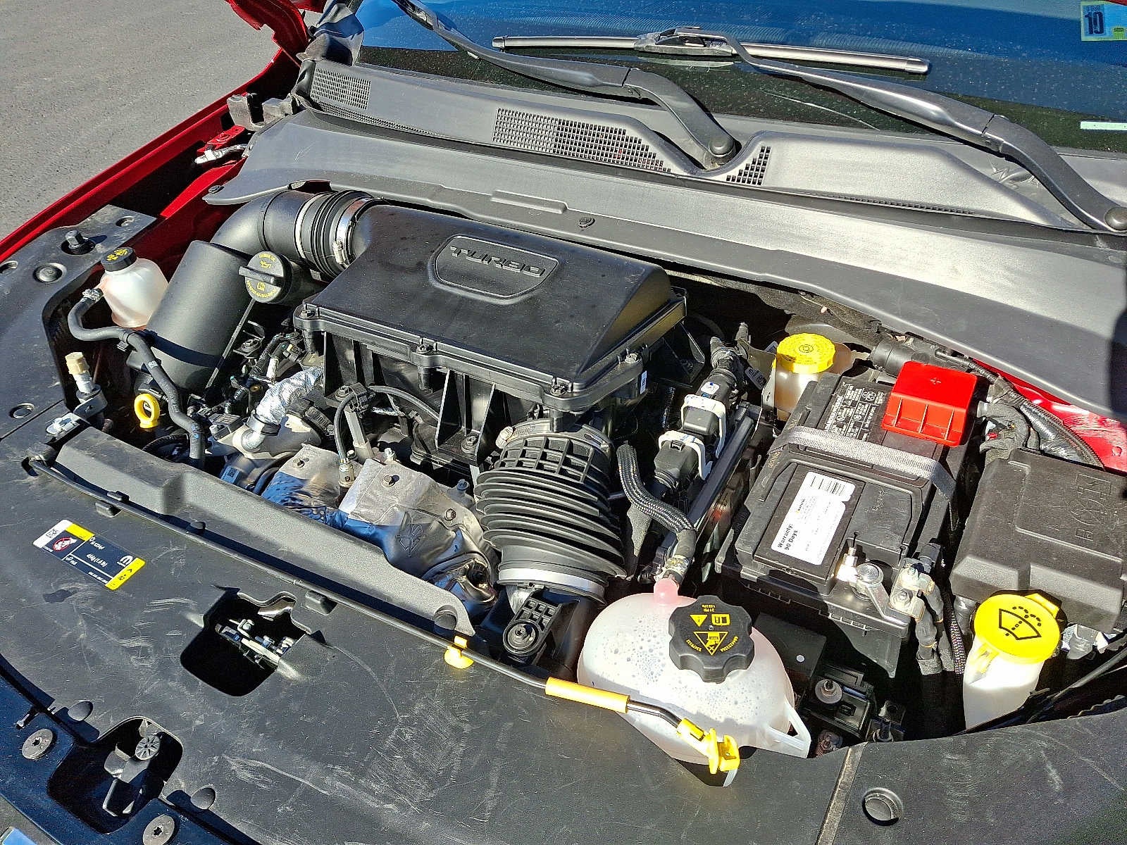 Superb Condition. EPA 32 MPG Hwy/24 MPG City! Red Hot Pearlcoat exterior and Black interior. Heated Leather Seats, Premium Sound System, Back-Up Camera, ENGINE: 2.0L I4 DOHC DI TURBO W/ESS, Alloy Wheels, TRANSMISSION: 8-SPEED AUTOMATIC 8F30,4x4, Non-Smoker vehicle.
